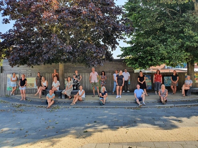 o Groep 1-2b verzamelt op de bankjes voor hun eigen klas